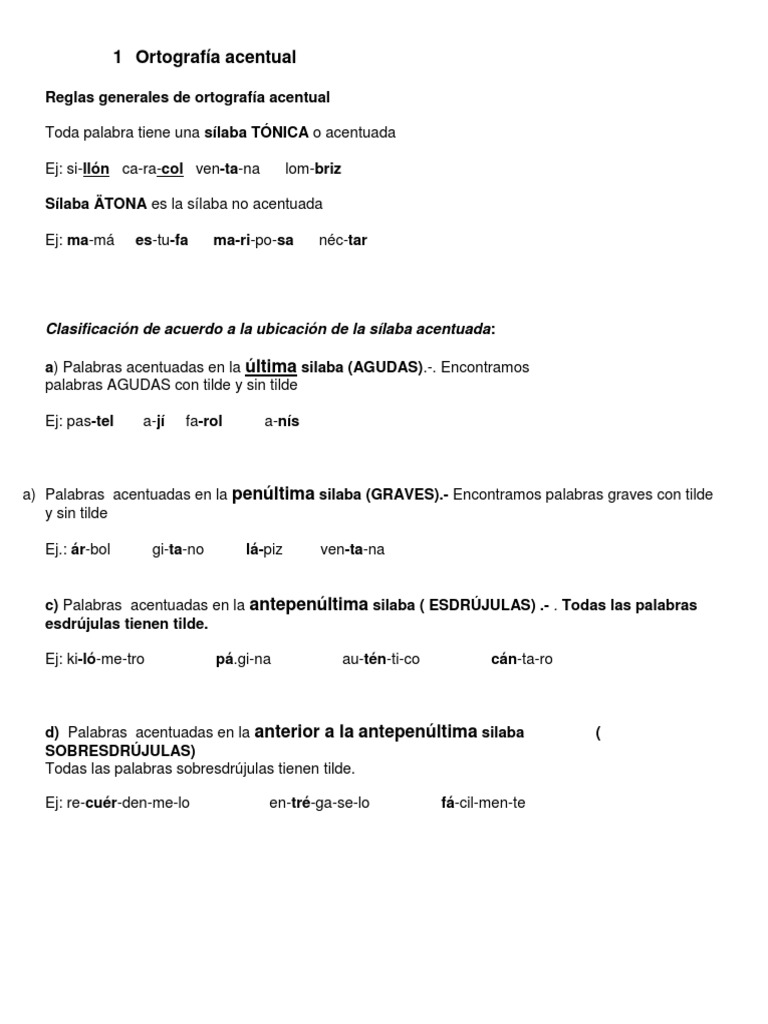 Ejemplos De Acentuacion Agudas Llanas Y Esdrujulas Lenguaje Y
