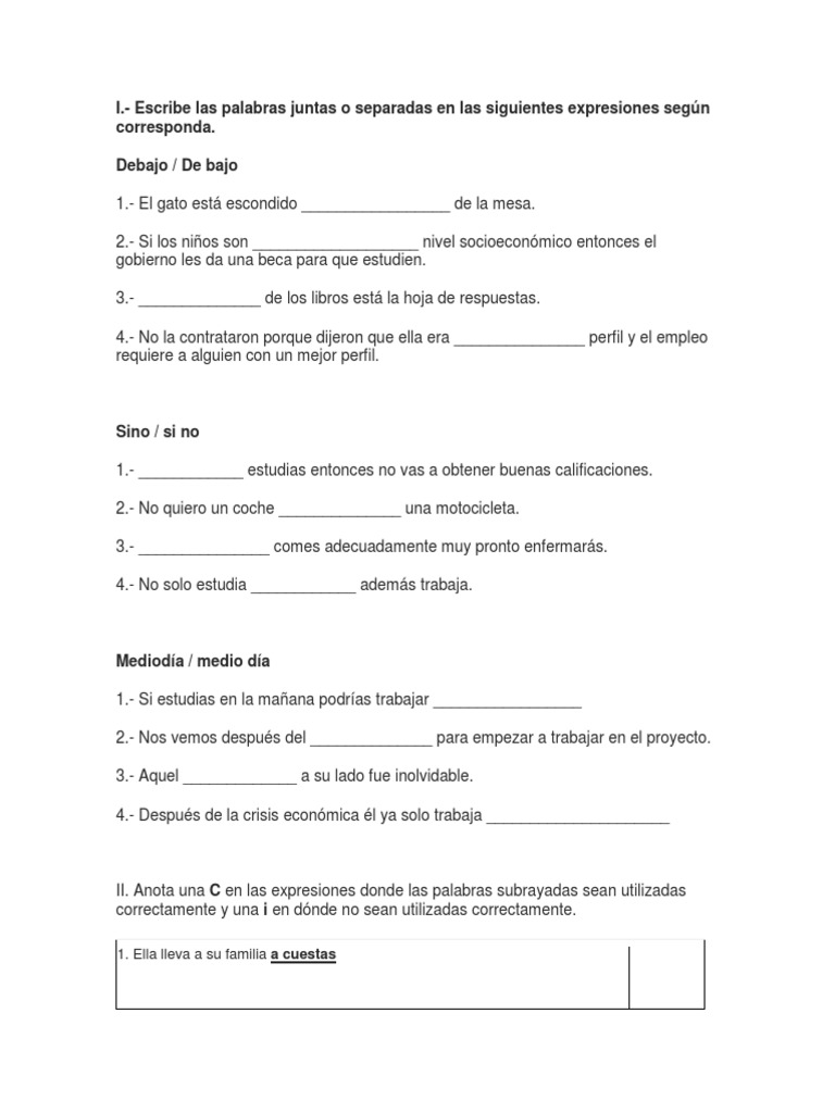 Ejercicios De Palabras Juntas Y Separadas Y Uso De La V Y B