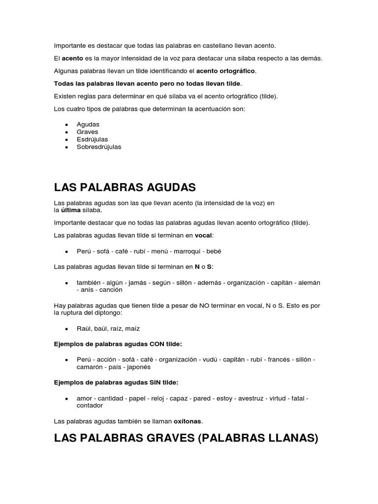 Palabras Agudas Con Acento Ortografico