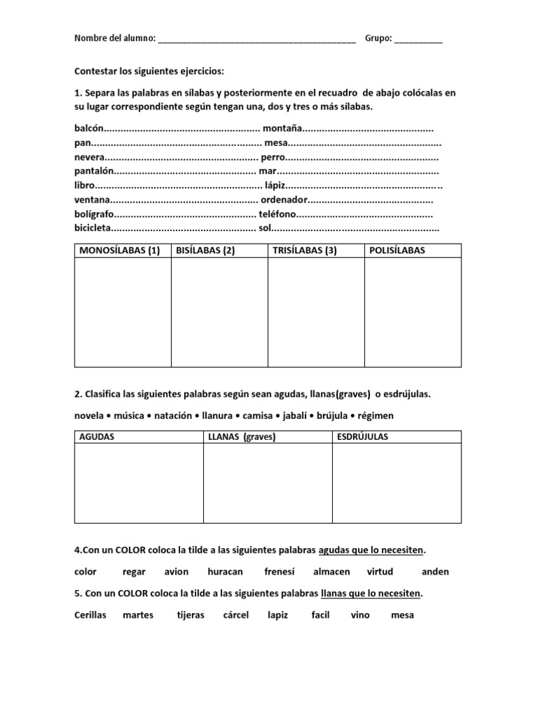 Ejercicios Palabras Llanas Agudas Y Esdrujulas