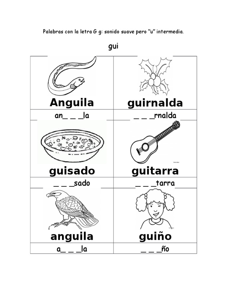Buscar Las Letras Palabras Con La G Y La Gu Juego