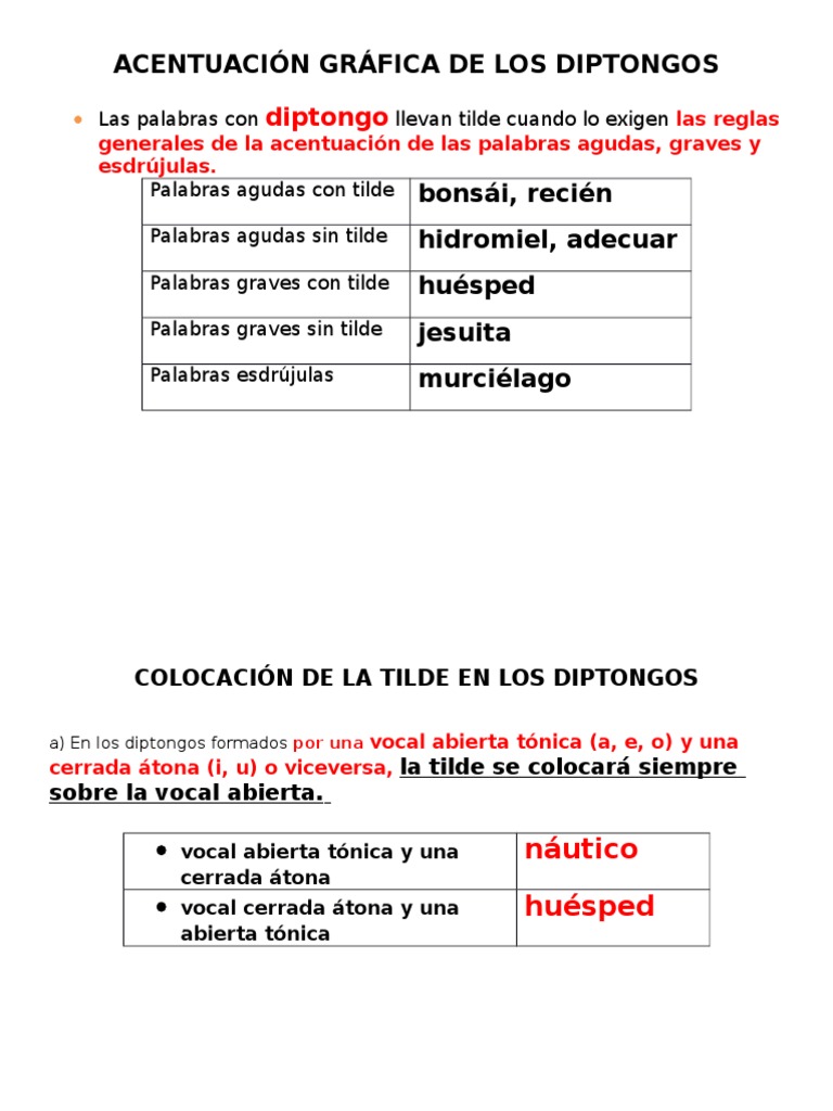 Las Palabras Con Diptongo Llevan Tilde Cuando Lo Exigen Las Reglas