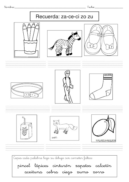 Ejercicios Palabras Con Za Zo Zu Ce Ci