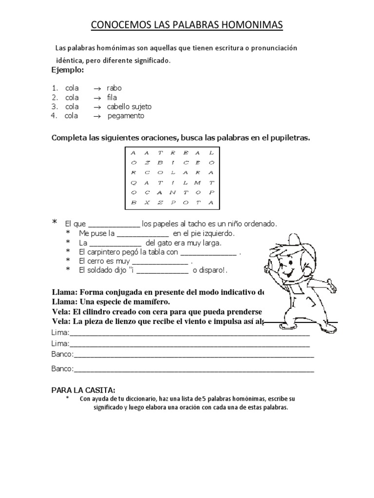 Palabras Homonimas Para Segundo De Primaria Fichas Para Imprimir