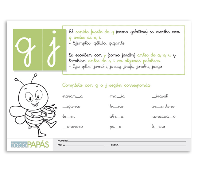 Fichas Sobre La Regla De Ortografia En Espanol De Las Letras G Y J
