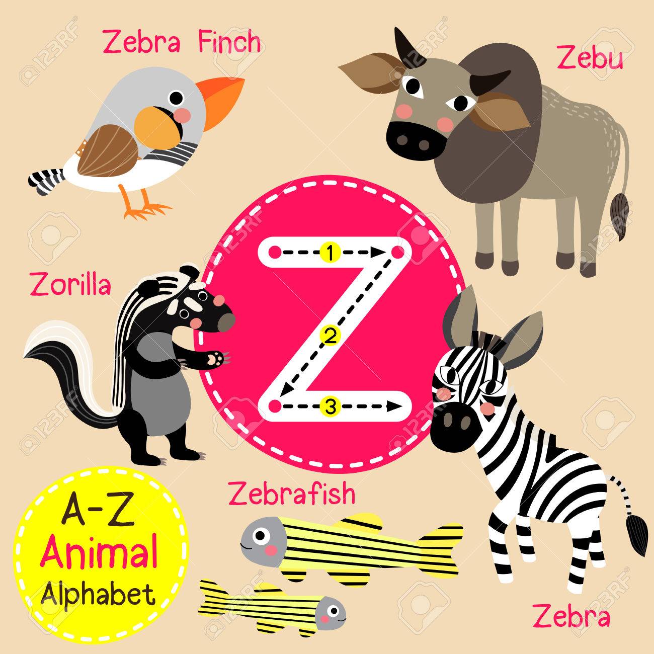 Z Letter Tracing Zebra Zebu Zorilla Zebrafish Zebra Finch