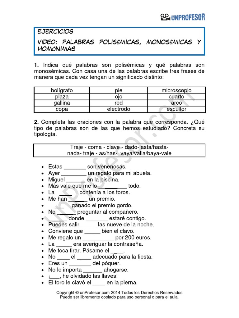 Ejercicio Palabras Polisemicas Monosemicas Y Homonimas 261