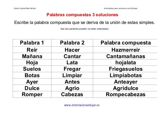Ejercicios Para Ninos Con Dislexia Construir Palabras Compuestas
