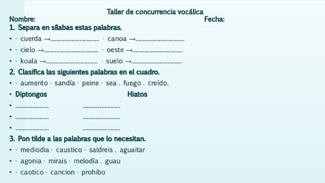 Ejercicios Diptongos E Hiatos Vocal Silaba