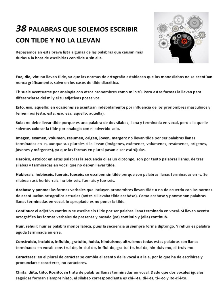 38 Palabras Que Solemos Escribir Con Tilde Y No La Llevan Pdf