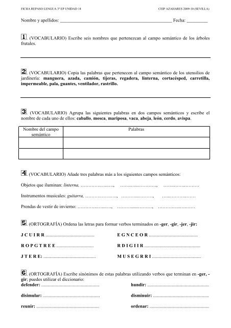 Ficha Repaso Lengua Unidad 14 Todo Primaria