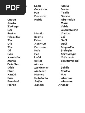 75 Ejemplos De Palabras Con Hiato Docx Comunicacion Oral Fonologia