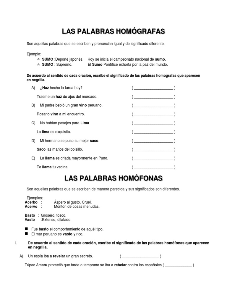 Palabras Homonimas Para Quinto Grado De Primaria Actividades 2020