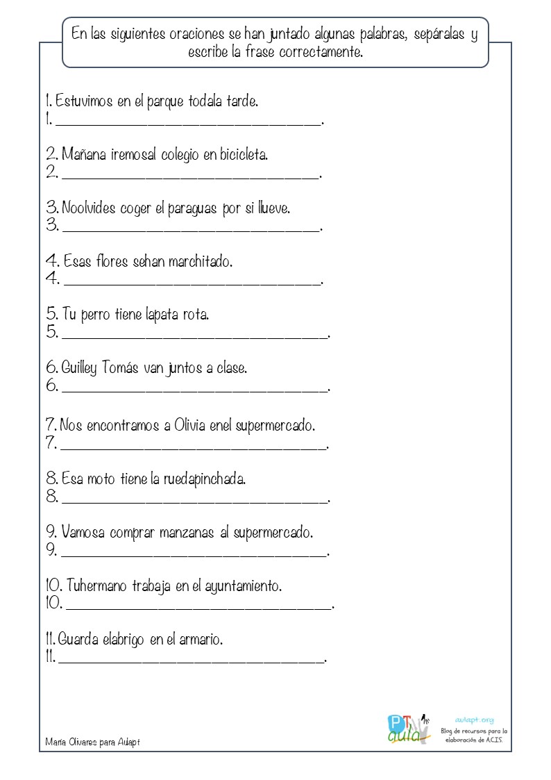 Ejercicios De Palabras Juntas Y Palabras Separadas