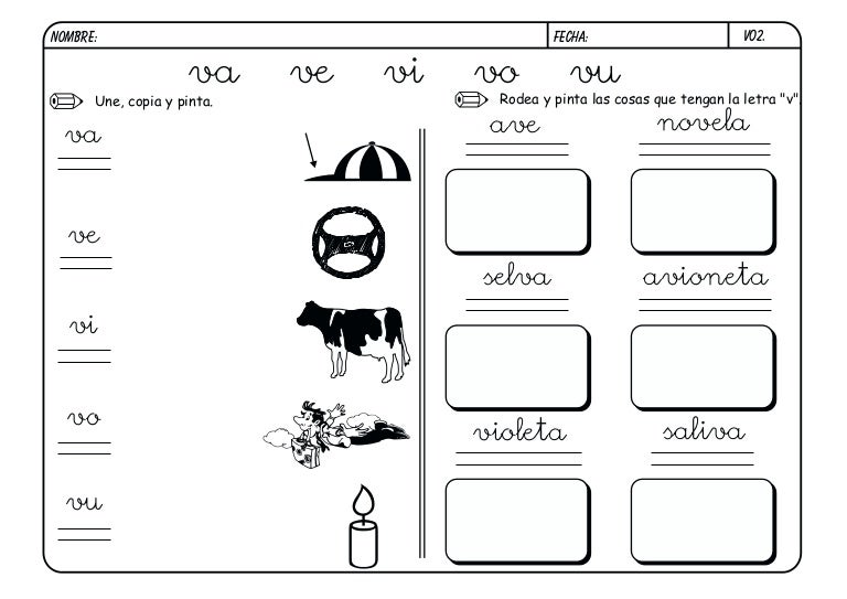 Palabras Con Va Ve Vi Vo Vu Para Colorear