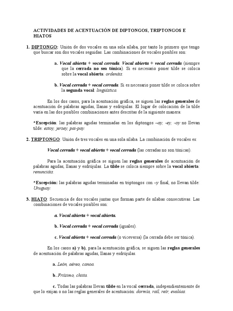Actividades De Acentuacion De Diptongos Idiomas Linguistica