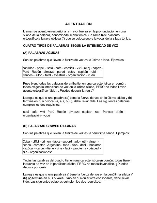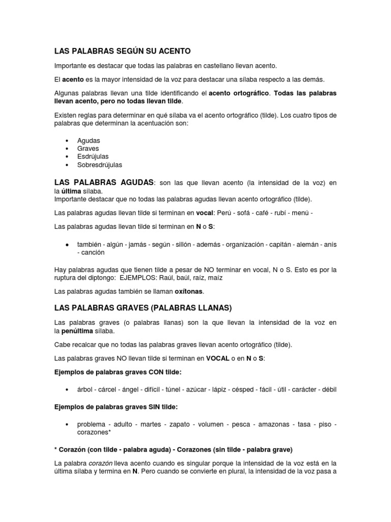 El Acento En Las Palabras Agudas Graves