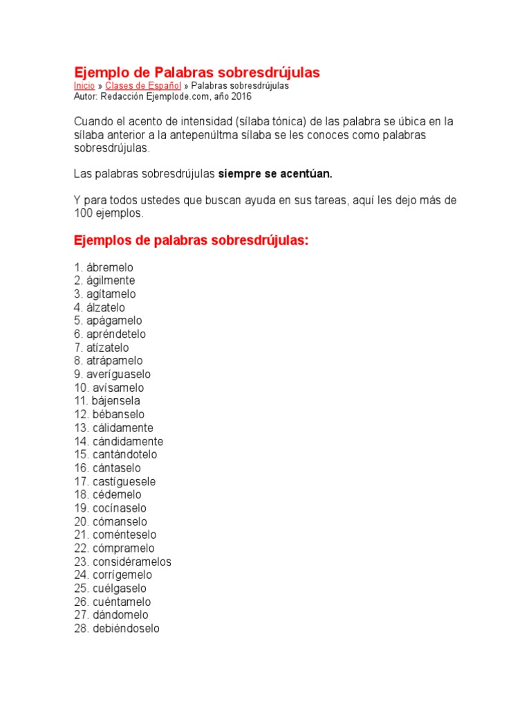 20 Palabras Esdrujulas Sin Tilde Ejemplos