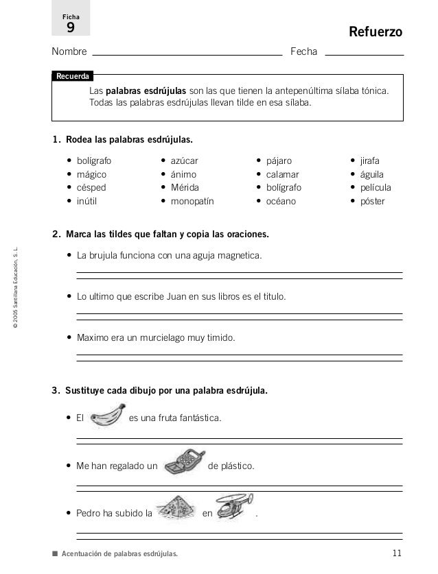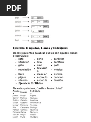 Ejercicios Palabras Llanas Agudas Y Esdrujulas Pdf