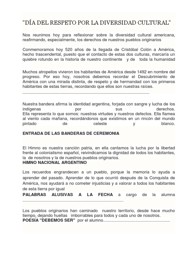 Glosas Acto Dia De La Diversidad Cultal Gente Indigena