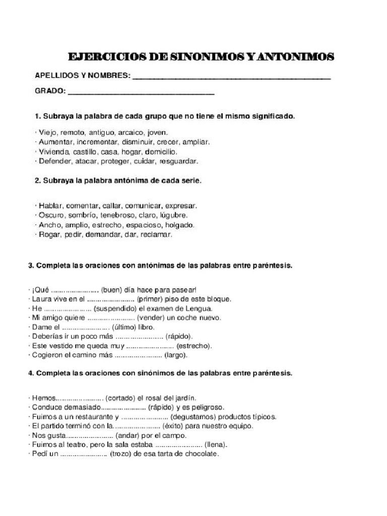 Antonimos Y Sinonimos Fichas De Ejercicios Para Primaria