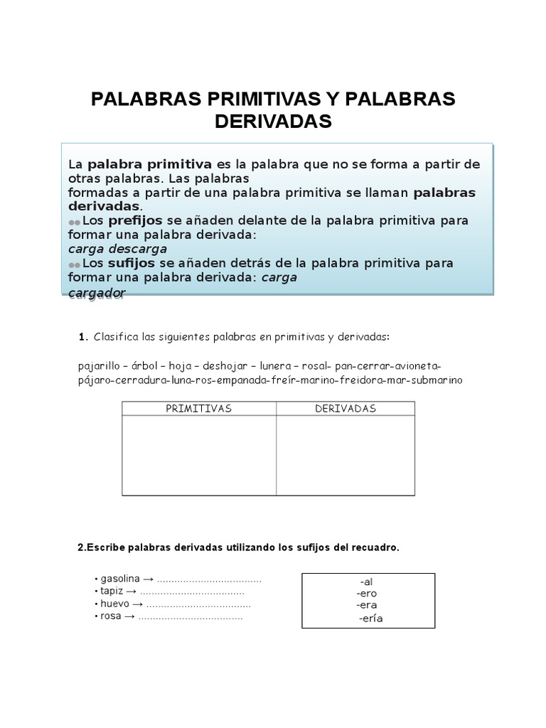 Calameo Palabras Primitivas Y Derivadas Con Actividades 1